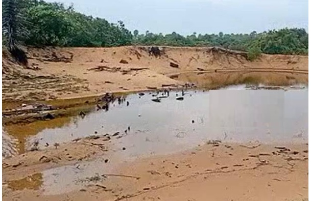 மணல் அகழப்பட்ட பகுதியைச் சுற்றி மக்கள் குடியிருப்பதால் பாரிய குழியில் தற்போது நீர் தேங்கி காணப்படுகிறது.