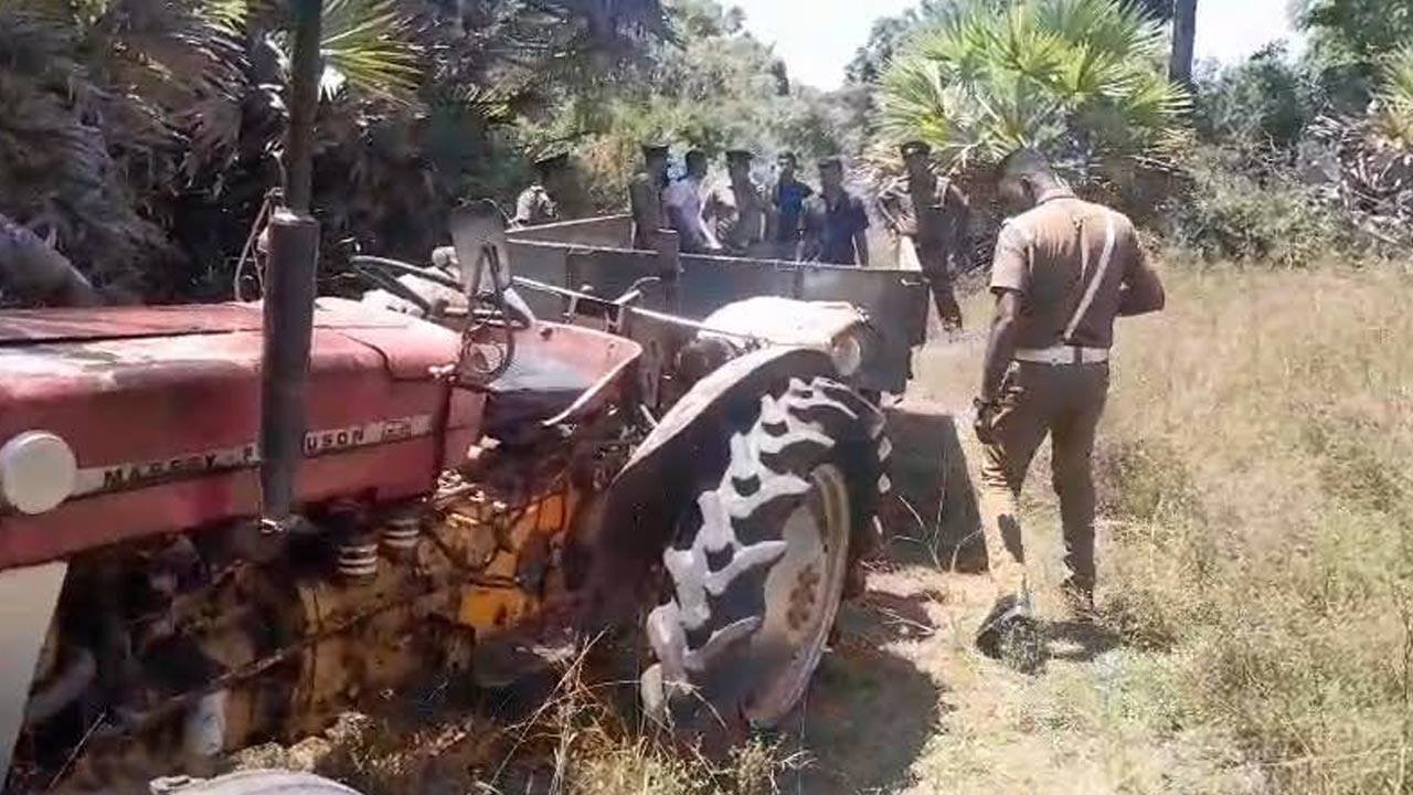 உழவு இயந்திரத்தைச் செலுத்திய பிரதான சந்தேகநபர் தொடர்ந்தும் தலைமறைவாக உள்ள நிலையில், அவரைப் பிடிப்பதற்கான தேடுதல் நடவடிக்கைகளை பொலிஸார் முன்னெடுத்து வருகின்றனர்.