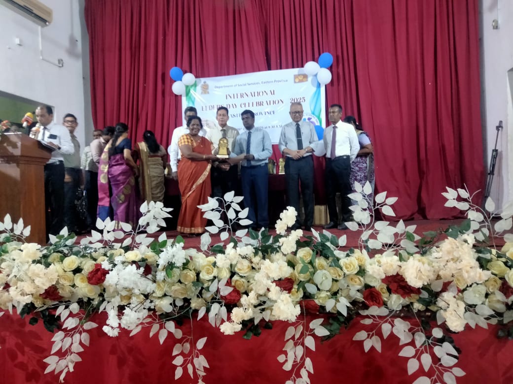 கிழக்கு மாகாண ஆளுனர் பேராசிரியர் ஜயந்தலால் ரத்ன சேகர, காரைதீவு கண்ணகி முதியோர் சங்கத் தலைவர் த.சிவானந்தராஜா பொருளாளர் த. வசந்தாதமலர் ஆகியோரிடம் அதற்கான விருதை வழங்கி கௌரவித்தார்.