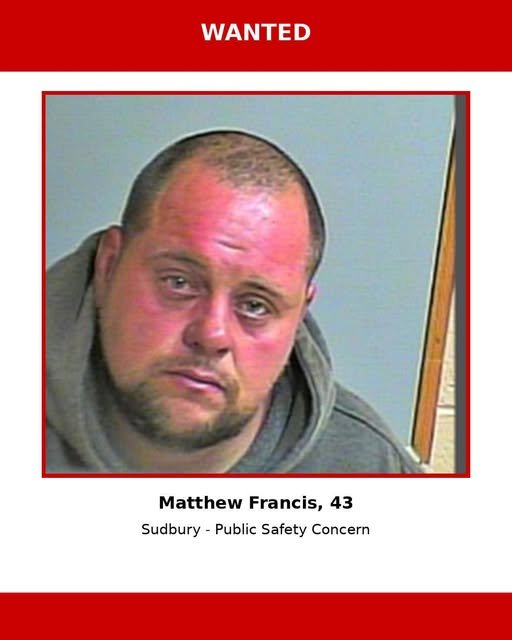 கிரேட்டர் சட்பரி பொலிஸ் சேவையின் தகவல்படி, 43 வயதான மெத்யூ பிரான்சிஸ் (Matthew Francis) என்பவர் இரண்டு பிடியாணைகளின் கீழ் தேடப்பட்டு வருகிறார்.