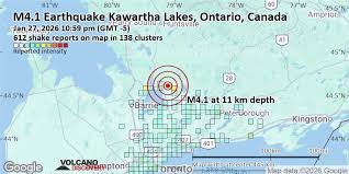 ஜனவரி 27, செவ்வாய்க்கிழமை இரவு 10.59 மணியளவில் (உள்ளூர் நேரம், GMT -5), கனடாவின் ஒன்டாரியோ மாகாணத்தில் உள்ள டொராண்டோ நகரத்திலிருந்து சுமார் 104 கி.மீ (64 மைல்) தொலைவில், 4.1 அளவிலான நடுத்தர நிலநடுக்கம் ஏற்பட்டது.