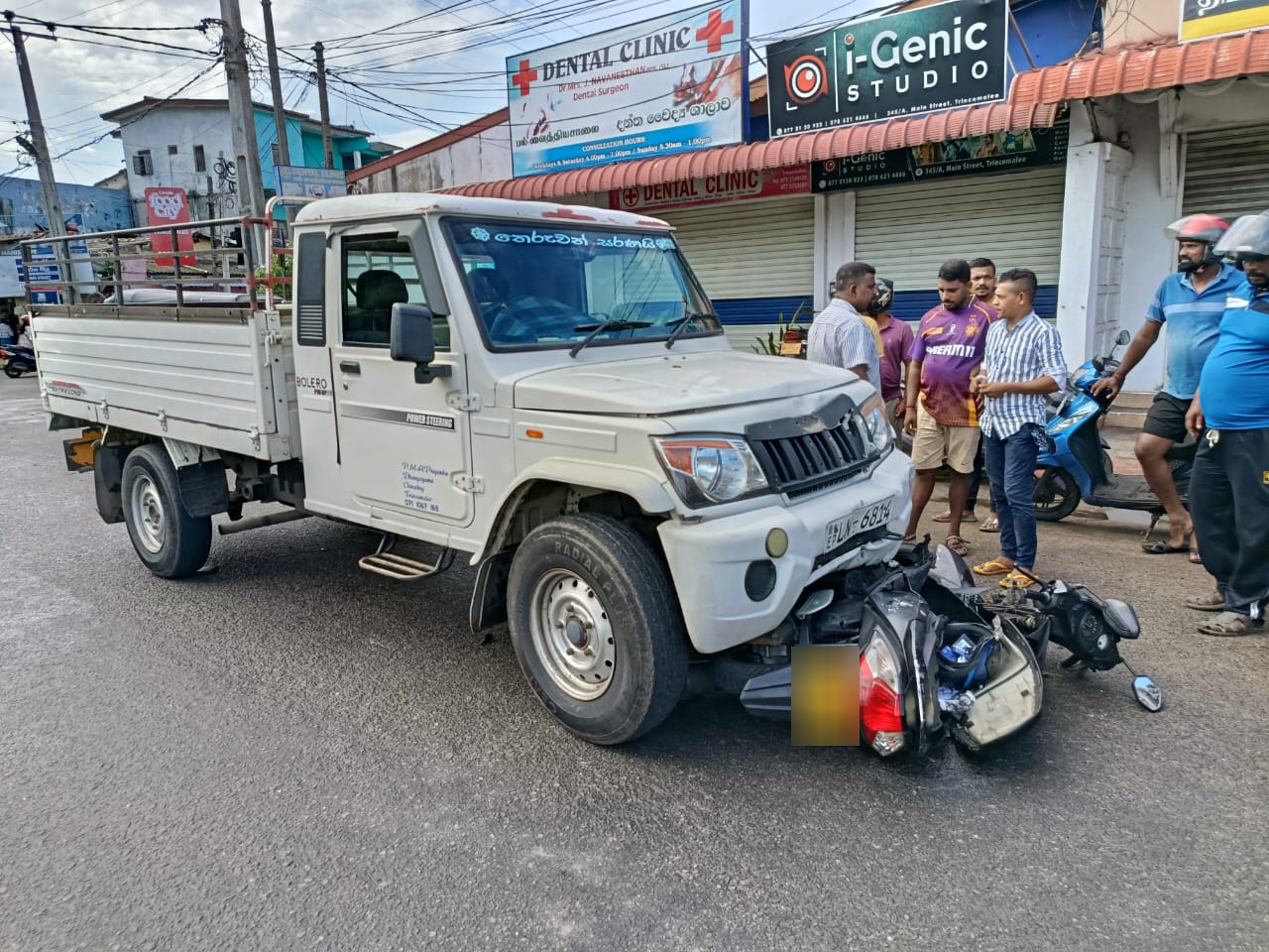 திருகோணமலை மடத்தடி சந்தியில் பட்டா ரக வாகனம் மோட்டார் சைக்கிளில் மோதி விபத்துக்குள்ளானதில் மோட்டார் சைக்கிளில் பயணித்த நபர் படுகாயங்களுக்கு உள்ளான நிலையில் திருகோணமலை வைத்தியசாலையில் அனுமதிக்கப்பட்டுள்ளார். இவ் விபத்துச் சம்பவம் இன்று ஞாயிற்றுக்கிழமை (19) காலை இடம்பெற்றுள்ளது.