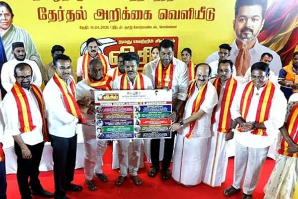 ஏழைப் பெண்களின் திருமணத்துக்கு ஒரு பவுன் தங்கம் வழங்கப்படும். ஒவ்வொரு வீட்டுக்கும் 200 யுனிட் இலவச மின்சாரம் வழங்கப்படும் என்பன உள்ளிட்ட வாக்குறுதிகள் அடங்கிய தேர்தல் அறிக்கையை த.வெ.க. தலைவர் விஜய் நேற்று (16) வெளியிட்டார்