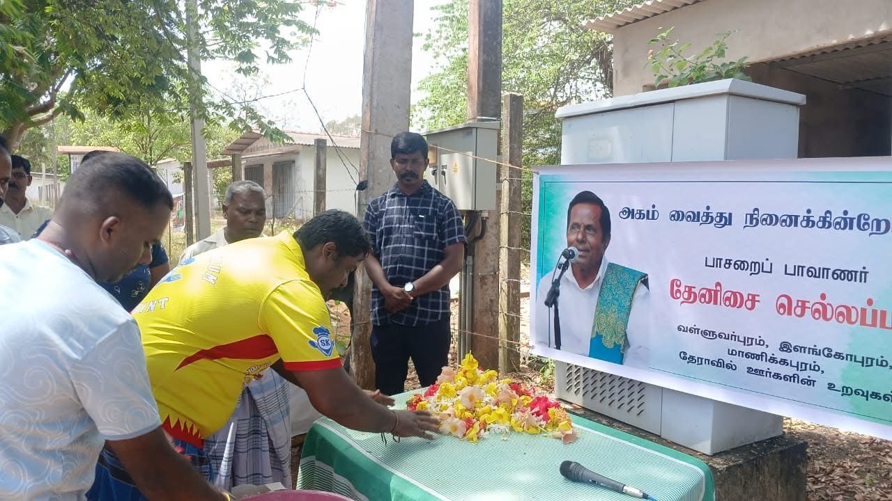 தமிழர்களின் விடுதலைப்போராட்ட வரலாற்றில் எழுச்சி பாடல்கள் பல நூறு பாடல்களை பாடி 28.04.2026 அன்று மறைந்த பாசறைப்பாணர் தேனிசை செல்லப்பா அவர்களுக்கு முல்லைத்தீவு றெட்பானா சந்திபகுதியில் மக்கள் அஞ்சலி செலுத்தியுள்ளார்கள்.