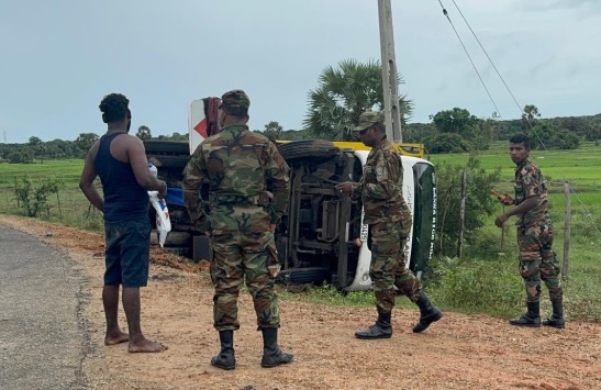 வற்றாப்பளை பகுதியில் இருந்து புதுக்குடியிருப்பு நோக்கி அரிசி ஏற்றி பயணித்துக் கொண்டிருந்த லொறி வாகனம், ஜங்கன்குளம் பகுதியில் உள்ள வளைவில் திரும்ப முற்பட்டபோது கட்டுப்பாட்டை இழந்து வீதியை விட்டு விலகி தடம்புரண்டுள்ளது.