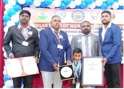 சாதனை படைத்த சிறுவனுக்குச் சான்றிதழ், நினைவு கேடயம், பதக்கம் மற்றும் அடையாளச் சின்னம் வழங்கி கௌரவிக்கப்பட்டது.