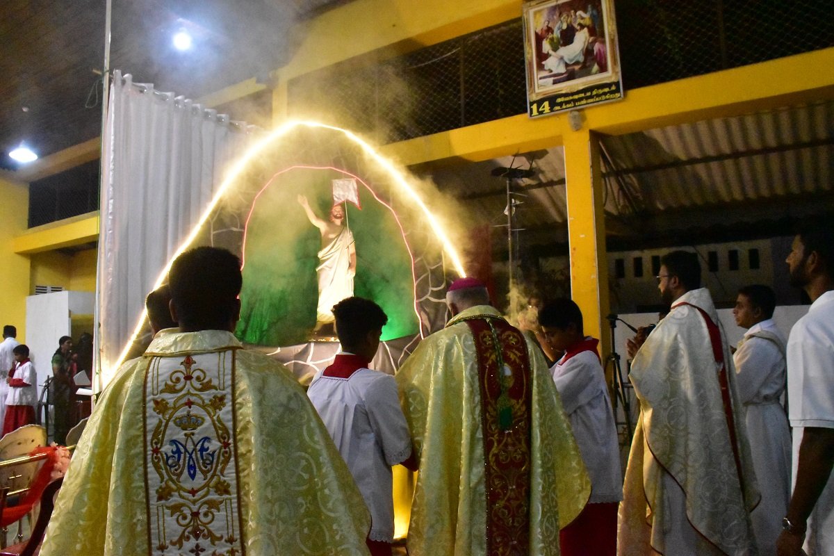 மன்னார் தூய செபஸ்தியார் பேராலயத்தில் உயிர்ப்பு பெருவிழா நள்ளிரவுத் திருப்பலி நேற்று இரவு 11.15 மணிக்கு ஆரம்பமானது.