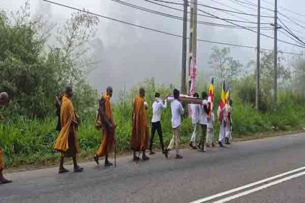 கடந்த 14.03.2026 அன்று முல்லைத்தீவு குருந்தூர் மலை விகாரையிலிருந்து இந்த யாத்திரை ஆரம்பமானது. ஹிறிகத்பவன் வெவ உப நிதாலங்கார பௌத்த மதகுருவின் தலைமையில், 6 பௌத்த துறவிகள் மற்றும் 10 பேர் அடங்கிய சிவில் சமூகத்தினர் இந்த ஆன்மீக நடைப்பயணத்தில் பங்கேற்றுள்ளனர்.