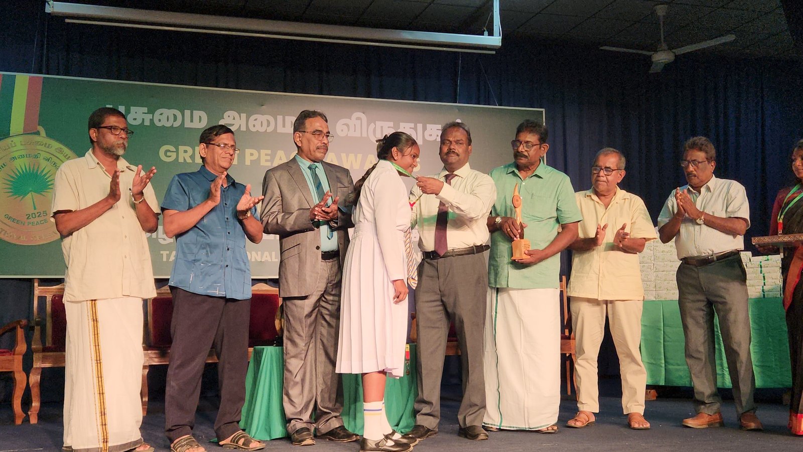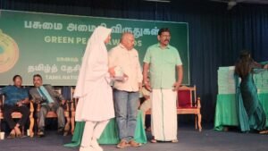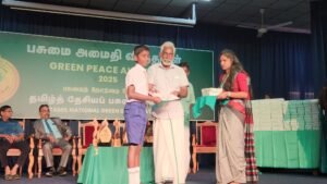 தமிழ்த்தேசியப் பசுமை இயக்கத்தின் ஏற்பாட்டில் பசுமை அமைதி விருதுகள்-2025 பரிசளிப்பு விழா நேற்று ஞாயிற்றுக்கிழமை (26.04.2026) பிற்பகல்- 3 மணிக்கு யாழ்ப்பாணப் பல்கலைக்கழக கைலாசபதி கலையரங்கத்தில் தமிழ்த்தேசியப் பசுமை இயக்கத் தலைவர் பொன்னுத்துரை ஐங்கரநேசன் தலைமையில் இடம்பெற்றது. ஆரம்ப நிகழ்வாக கிளிநொச்சி இந்துக் கல்லூரி மாணவர்களின் வாத்திய இசைக்கச்சேரி இடம்பெற்றது.