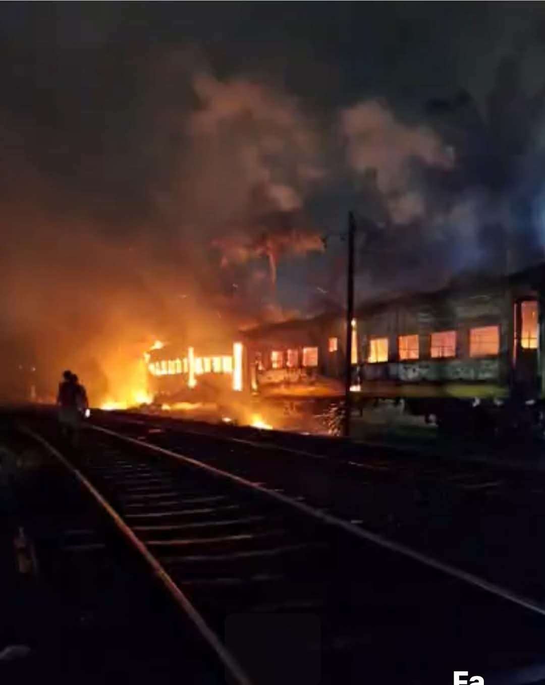 ரயில் பெட்டிகள் பல தீக்கிரை