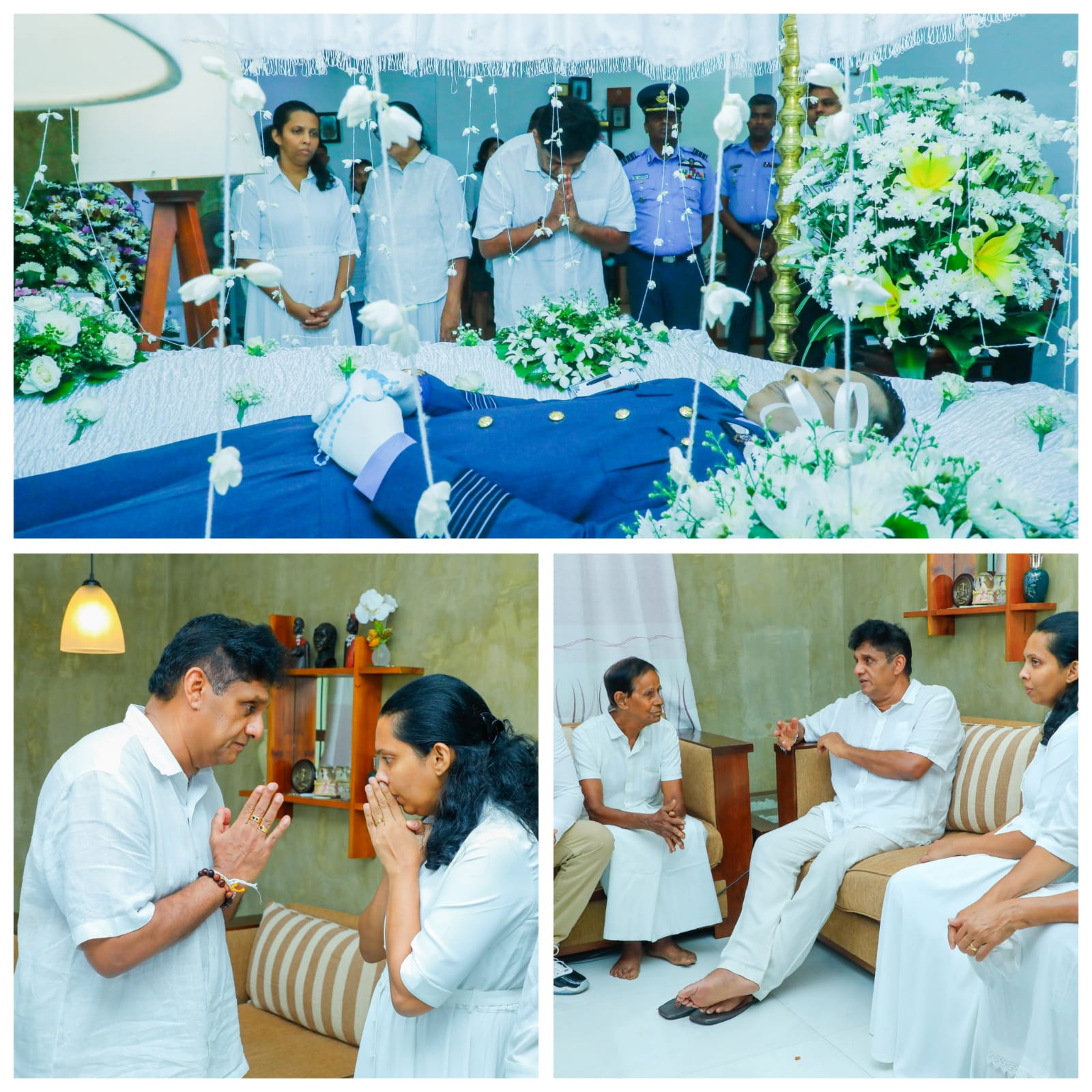 பேரிடர் நிவாரணப் பணிகளில் ஈடுபட்டுக் கொண்டிருந்த போது வென்னப்புவ, லுணுவில பகுதியில் உலங்குவானூர்தியை தரையிருக்கும் வேளையில் இடம்பெற்ற விபத்தில், உயிரிழந்த இலங்கை விமானப் படை விமானி விங் கமாண்டர் நிர்மலா சியம்பலாபிட்டியவின் பூதவுடலுக்கு எதிர்க்கட்சித் தலைவர் சஜித் பிரேமதாச இன்று (04) இறுதி அஞ்சலி செலுத்தினார்.