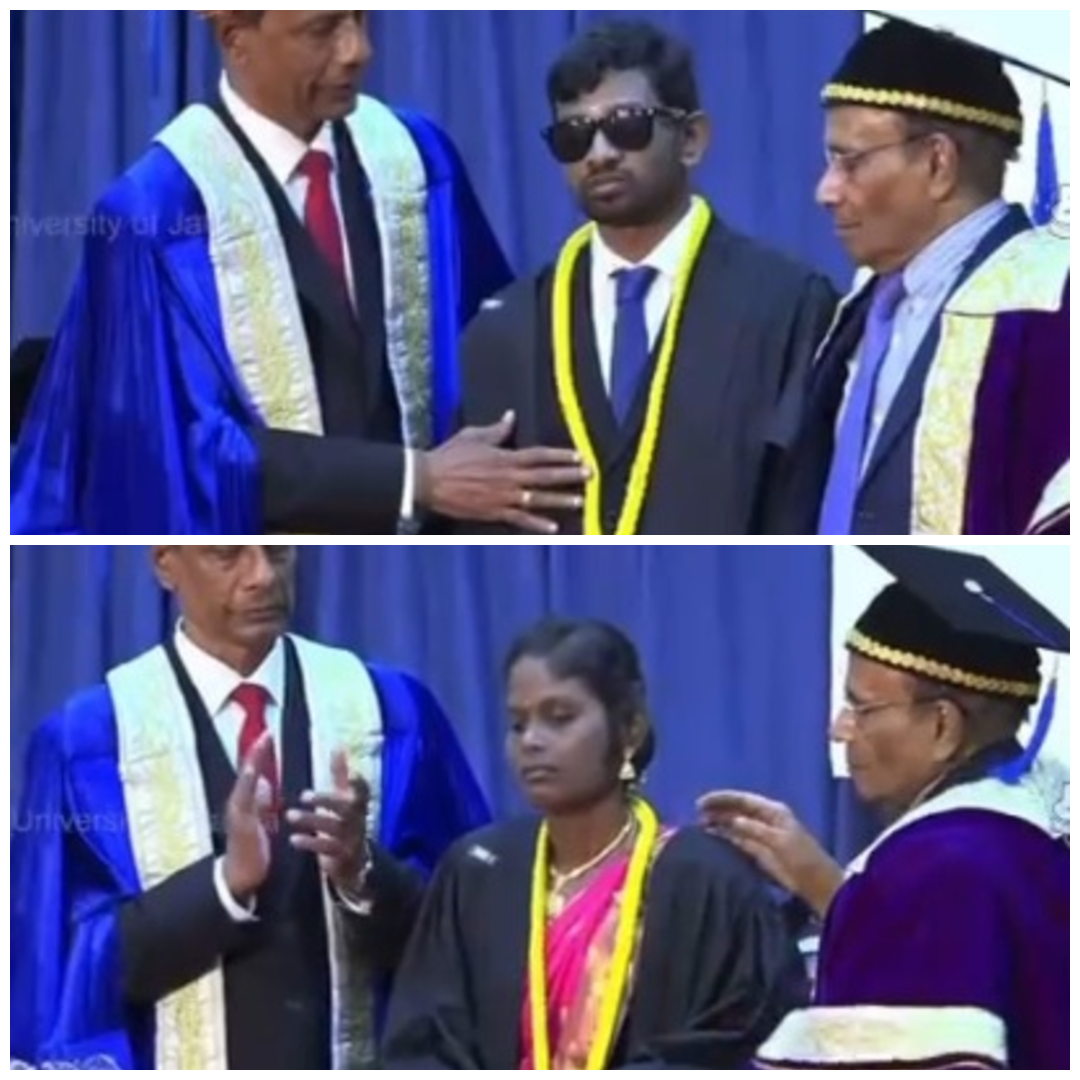 பார்வை இழந்தும், கல்வியில் சாதிக்த வேண்டும் என்ற அவாவில் கல்வி பயின்று, இவ்வாறு பட்டம் பெற்ற பட்டதாரிகளை பலரும் பாராட்டி வருகின்றனர்.