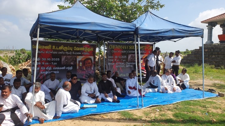 “செம்மணி உடனிருப்பு வேண்டுதல்” என்ற தொனிப்பொருளில் தமிழர் இனப்படுகொலைக்கு நீதி வேண்டி, தேசிய கிறிஸ்தவமன்ற ஆயர் பேரவையினரால் இன்றைய தினம் வியாழக்கிழமை (30) யாழ்ப்பாணம் வளைவுக்கு அருகில், அணையா தீபம் சுற்றுவட்டப் பகுதியில் கவனயீர்ப்பு போராட்டம் முன்னெடுக்கப்பட்டது. இந்த அடையாளப் போராட்டத்தில் பல்வேறு மாவட்டங்களின் மறைமாவட்ட ஆயர்கள், அருட்சகோதரர்கள் என பல கத்தோலிக்க பிரமுகர்கள் பங்கெடுத்தனர். முன்னதாக அணையா தீப தூபிக்கு மலர்மாலை அணிவித்து அஞ்சலி செலுத்திய தேசிய கிறிஸ்தவ மன்ற ஆயர் பேரவையினர் அங்கிருந்து ஊர்வலமாக, […]