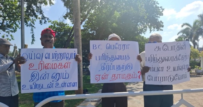 ஓய்வூதியம் பெறும் ஆசிரியர்கள் மட்டக்களப்பு காந்திபூங்காவிற்கு முன்னால் சனிக்கிழமை (01) போராட்டமொன்றை முன்னெடுத்துள்ளனர். ஆசிரியர்களுக்கும், அதிபர்களுக்கும் சமத்துவமான ஓய்வூதியம் வேண்டும், ஆசிரியர் சம்பள முரண்பாடு தீர்க்கப்படாமல் 28 வருடங்கள் கடந்துள்ளன, ஓய்வூதிய முரண்பாட்டை தீர்க்க அரசிடம் தீர்க்க அரசிடம் நீதி கோருவோம் போன்ற கோரிக்கைகளை முன்வைத்து ஆர்ப்பாட்டத்தில் ஈடுபட்டனர். இன்றையதினம் பிரதமர் ஹரிணி அமரசூரிய மட்டக்களப்புக்கு விஜயம் மேற்கொள்ளவுள்ள நிலையில், இந்த கவனயீர்ப்பு போராட்டம் முன்னெடுக்கப்பட்டுள்ளமை குறிப்பிடத்தக்கது. 28 ஆண்டுகளாக அமைதியாகக் காத்திருக்கும் ஓய்வுபெற்ற ஆசிரியர்கள் மற்றும் […]