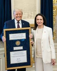 நோபல் பரிசை ட்ரம்பிடம் வழங்கிய மச்சாடோ