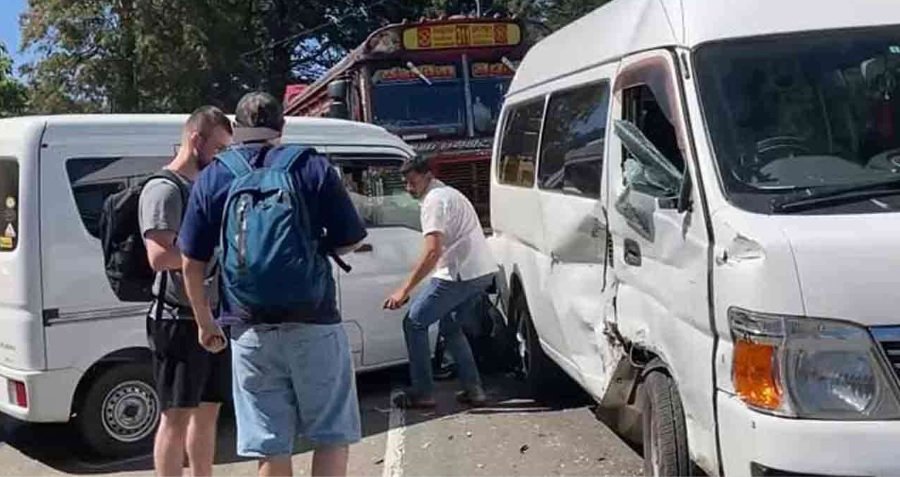 வெளிநாட்டு சுற்றுலாப் பயணிகள் குழுவினர் பயணித்த வேன் ஒன்று, வெலிமடை பிரதான வீதியில் நுவரெலியா கிரகரி வாவிக்கு அருகில் விபத்துக்குள்ளாகியுள்ளது. வெலிமடையிலிருந்து கட்டுநாயக்க நோக்கிப் பயணித்துக் கொண்டிருந்த வேன் ஒன்றில், நேற்று (15) பிற்பகல் 3 மணியளவில் மோதியதாலேயே இந்த விபத்து நேர்ந்துள்ளதாக பொலிஸார் தெரிவித்தனர். இந்த விபத்தில் எவருக்கும் காயங்கள் ஏற்படவில்லை, இருப்பினும் இரண்டு வேன்களும் கடும் சேதமடைந்துள்ளன. வெலிமடையிலிருந்து கட்டுநாயக்க நோக்கி அதிவேகத்தில் சென்ற வேன், கட்டுப்பாட்டை இழந்து, வீதியை விட்டு விலகிச் சென்று, […]
