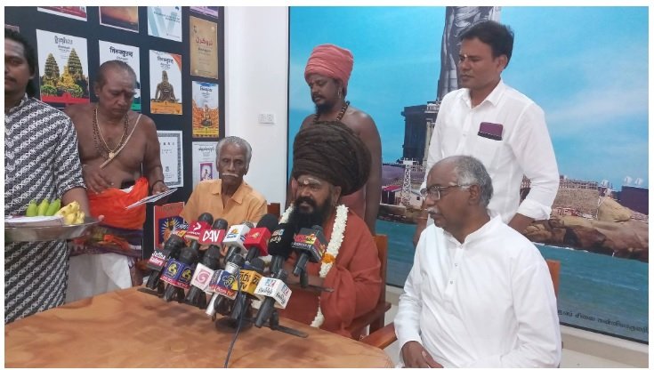 இந்தியாவின் திருக்கைலாய பரம்பரை தருமை ஆதீனம் 27 வது நட்சத்திர குருமணிகள் ஸ்ரீலஸ்ரீ மாசிலாமணி தேசிக ஞானசம்பந்த பரமாசாரிய சுவாமிகளின் நேரடி தரிசனம் மாவிட்டபுரம் சிவபூமி திருக்குறள் வளாகத்தில் செஞ்சொற்செல்வர் கலாநிதி ஆறு.திருமுருகன் சுவாமிகளை வரவேற்றார்.
